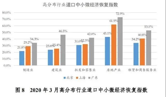 (2)2020年3月房产建筑业中小微企业经济恢复指数最高。