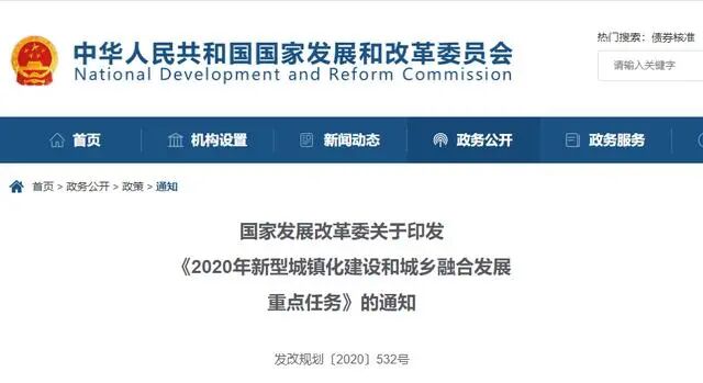 4月9日,国家发改委官网发布《2020年新型城镇化建设和城乡融合发展重点任务》,着眼于优化城镇化空间格局、提升城市综合承载能力等方面。